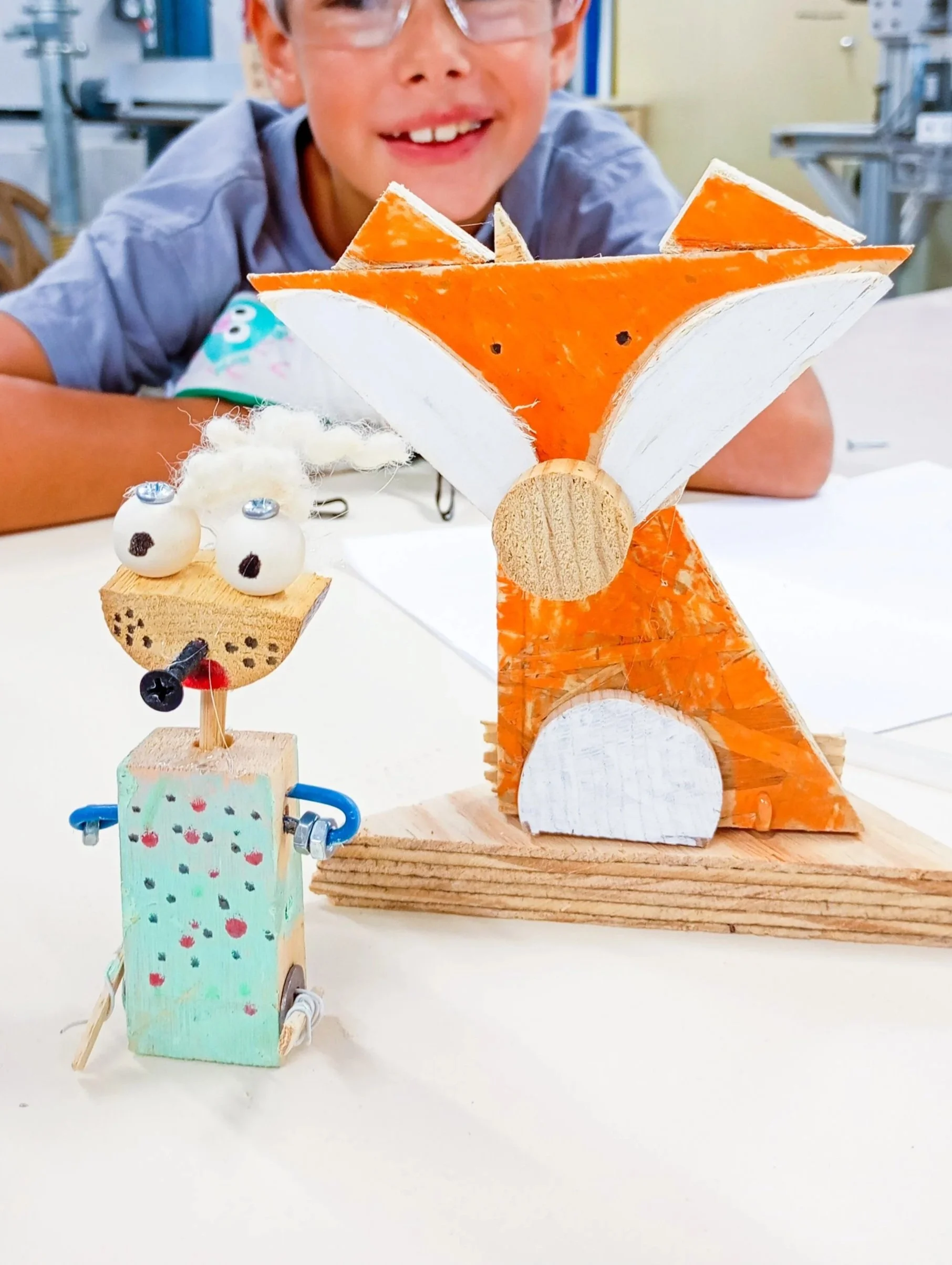 Un atelier pour découvrir un seul outil sans danger (+ le pistolet à colle) pour fabriquer un objet ludique et coloré